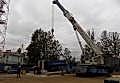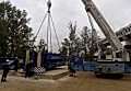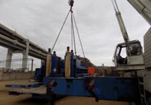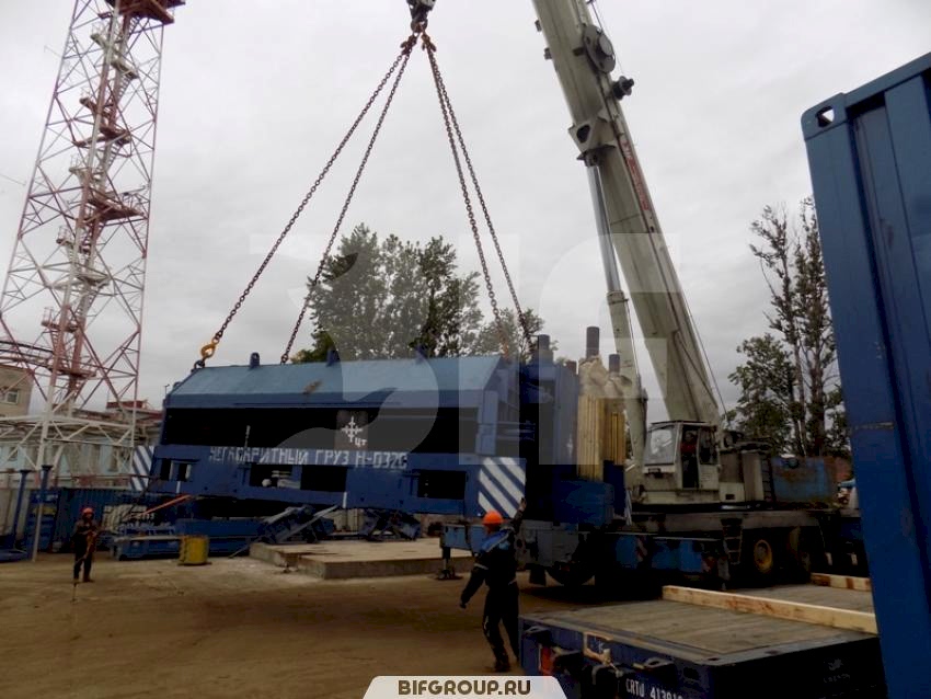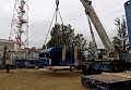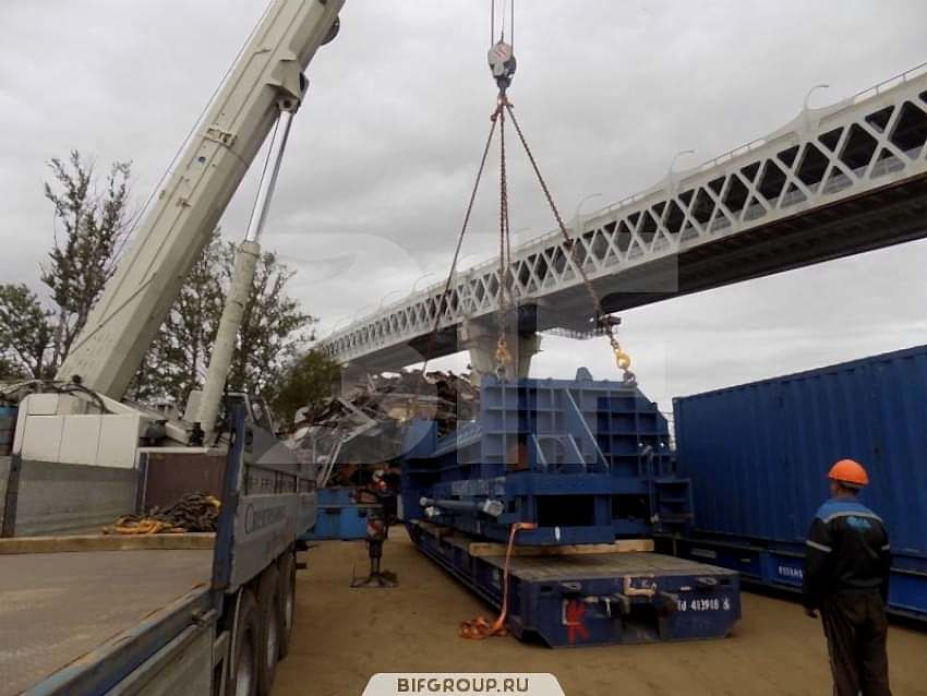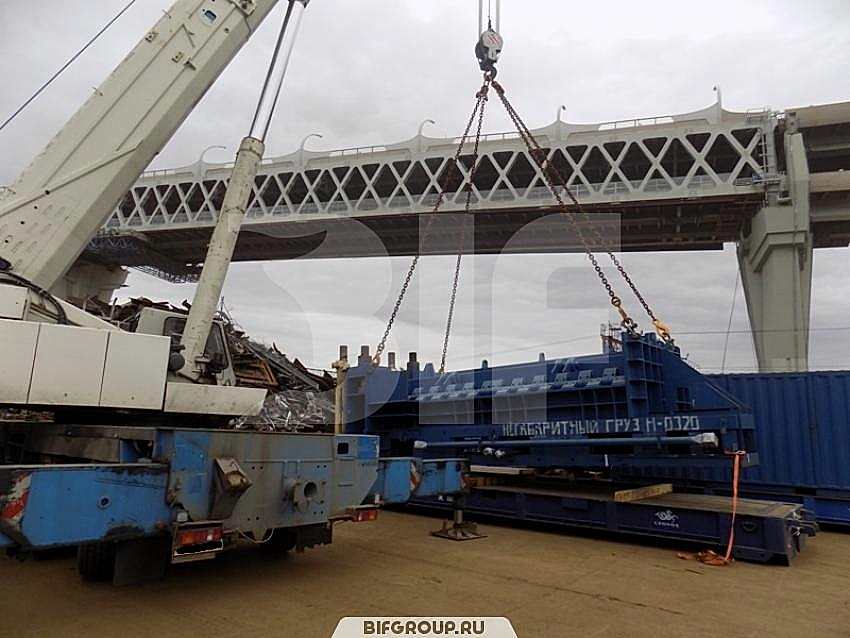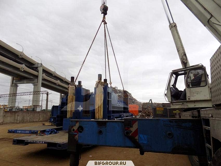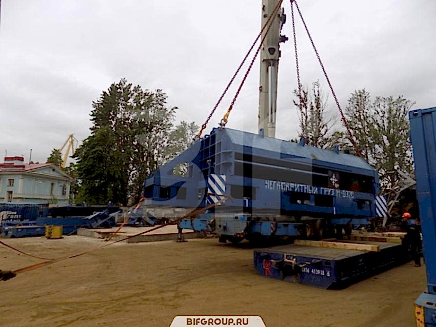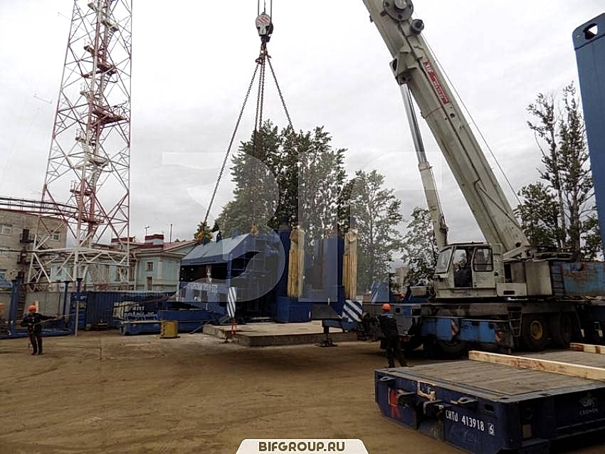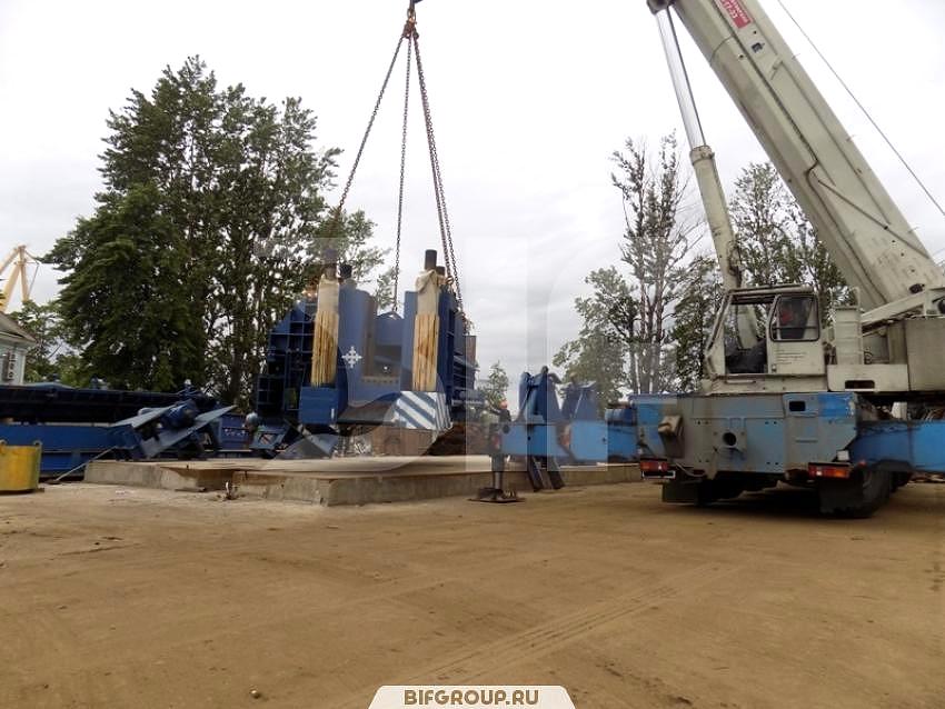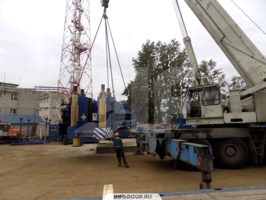 По очередной заявке мы выполняли комплекс работ на объекте «Петролеспорт». Нашей задачей был монтаж пресса для «Пин-ап» весом 60 тонн, для чего использовался автокран Grove GMK 6220L грузоподъемностью 220 тонн. После того как пресс был установлен, мы осуществили его досборку, вес деталей и запчастей составлял от 6 до 16 тонн.