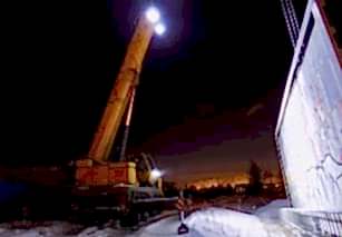 В Таллиннском шоссенашавтокранGrove GMK 4100 L «Пин-ап» задачу по монтажу рекламной конструкции. Обычно установка короба с рекламным щитом не вызывает затруднений, но в этот раз работе мешал сильный ветер. Опору поставили быстро, ее вес составлял 6 тонн. Вес щита - 9 тонн, из-за ветра на работу с ним ушло больше времени, но задачу выполнили успешно.