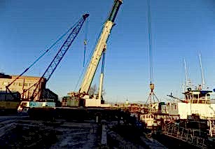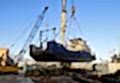Для проведения «Пин-ап» работ и технического обслуживания небольшие морские суда могут перемещаться на твердую почву, для этого используется мощная грузоподъемная техника.
