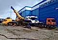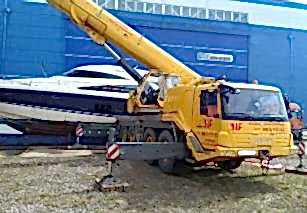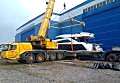По очередной заявке нааренду автокрананам было необходимо «Пин-ап» в Кировске яхту с транспортировочного трала. Вес яхты составлял 30 тонн, и для выполнения работ был направлен автокран Grove GMK 4100L грузоподъемностью 100 тонн. После организации сопровождения кран оперативно прибыл на объект, и яхта была аккуратно снята.