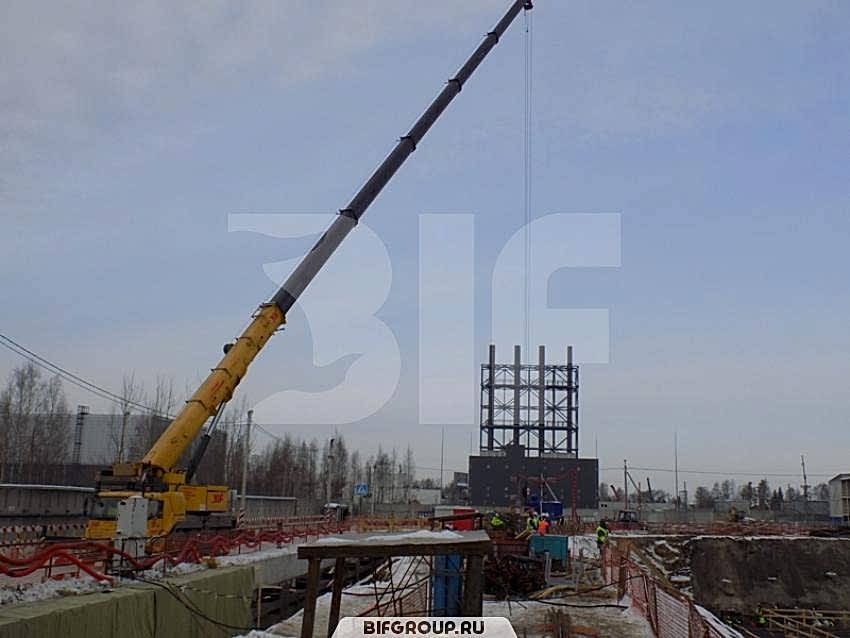 Задачей 45-тонного автокрана Liebherr LTM 1045-3.1 была подача материалов в котлован, а 100-тонный «Пин-ап» GMK4100L осуществлял монтаж части башенного крана, после чего так же подавал материалы в котлован. Автокран Liebherr LTM 1060-2 грузоподъемностью 60 тонн занимался подъемом и установкой стеклопакетов на высотку (башню), в работе использовался гусек.